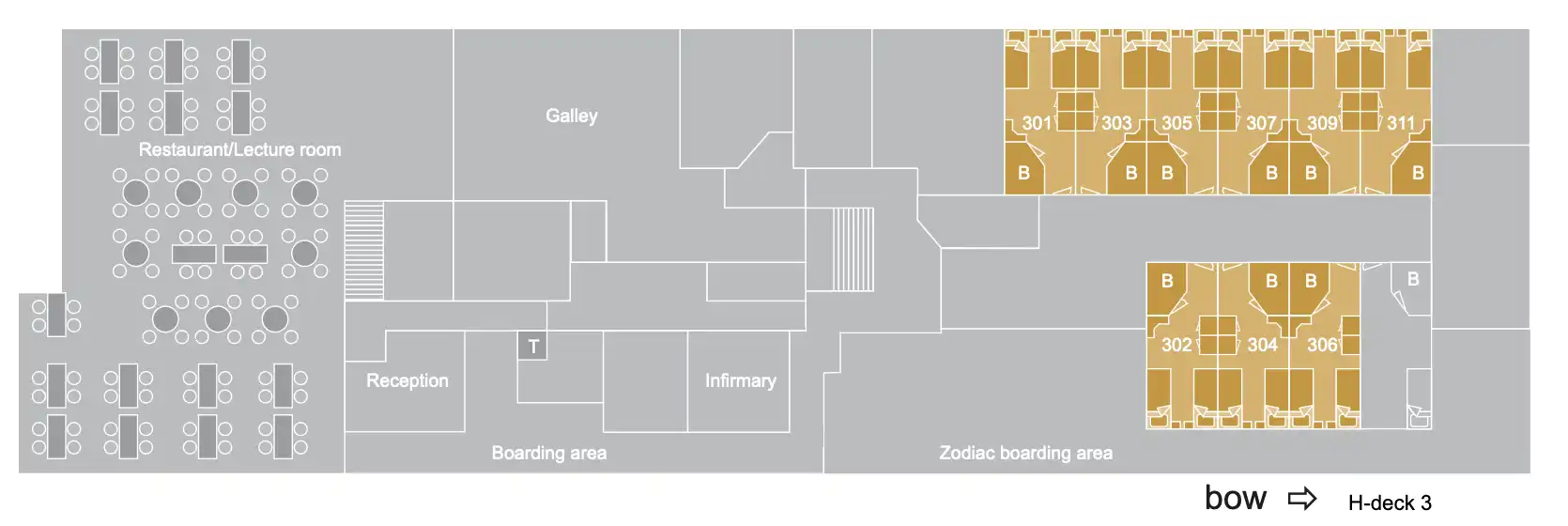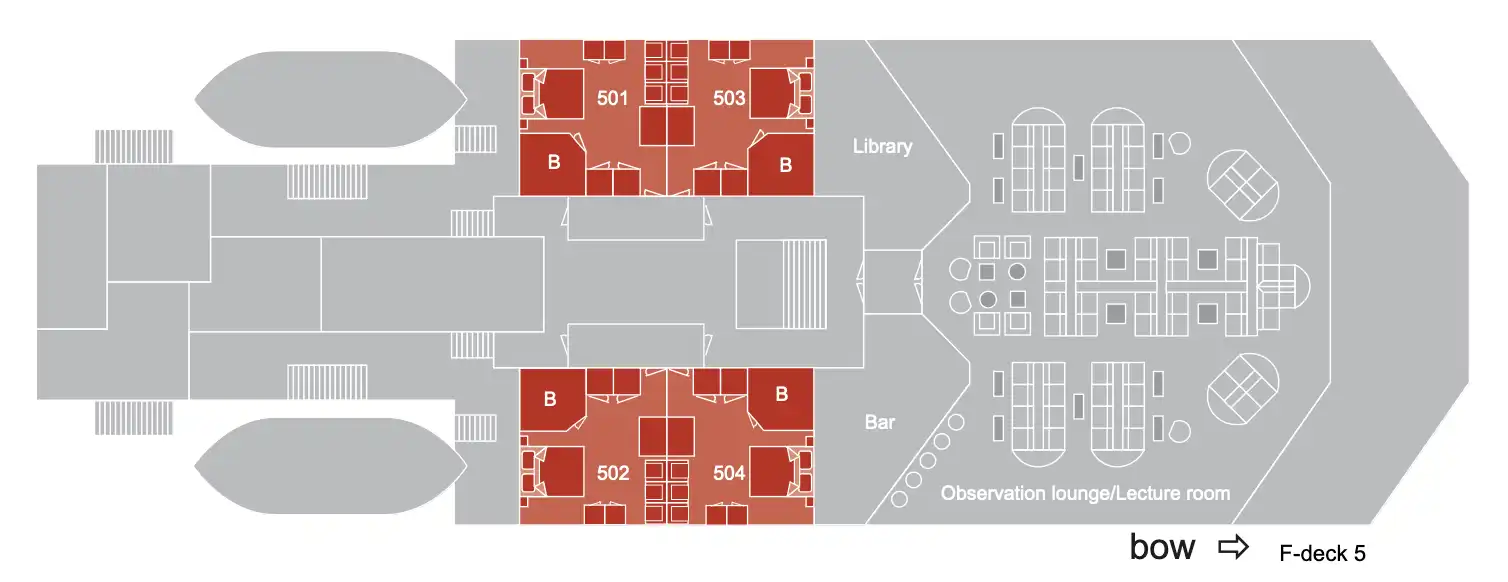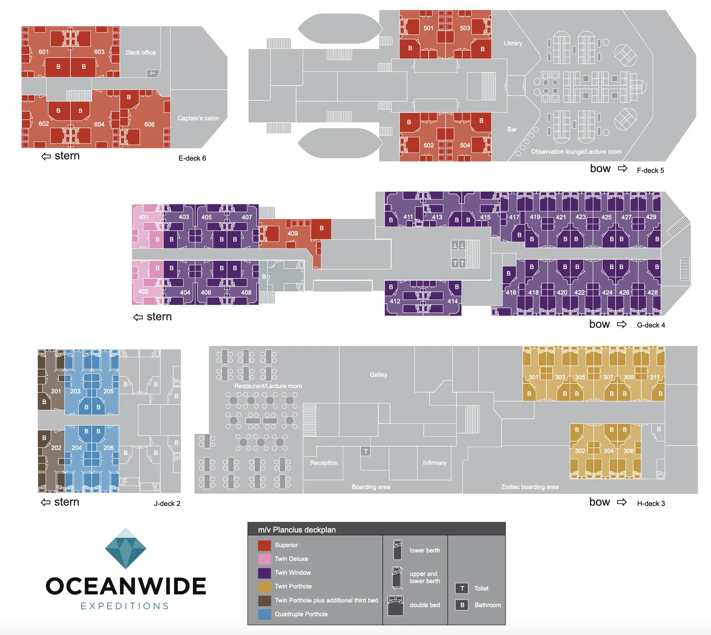Check out the complete Plancius Deck Plans below. These will provide you with all the key locations and staterooms, dining and entertainment facilities. If you click on the images below, you can enlargen the image to reveal all the details for that particularl deck on the ship.