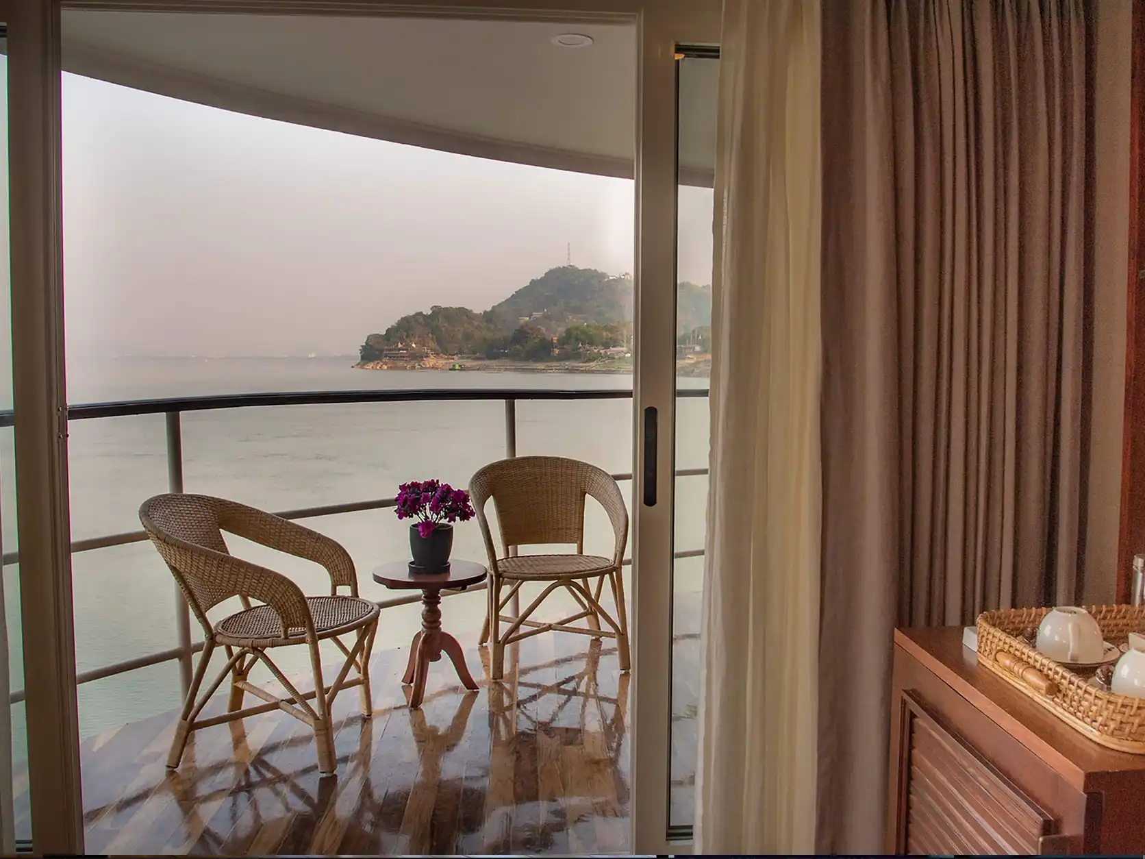 All standard cabins on ABN Charaidew II have French balconies, while the two deluxe cabins have a private balcony.
