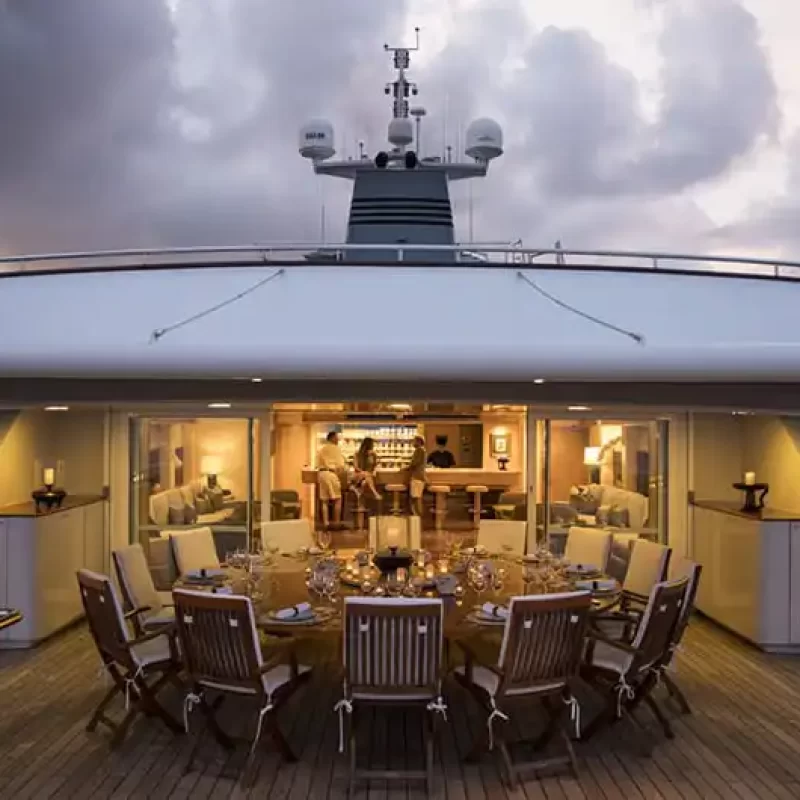 - Main Deck with Outdoor Seating, Salon and Dining Room