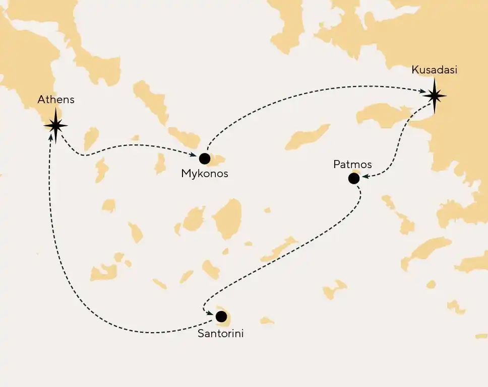 High‑value, short‑break cruising with iconic destinations: Mykonos, Patmos, Santorini and Ephesus.