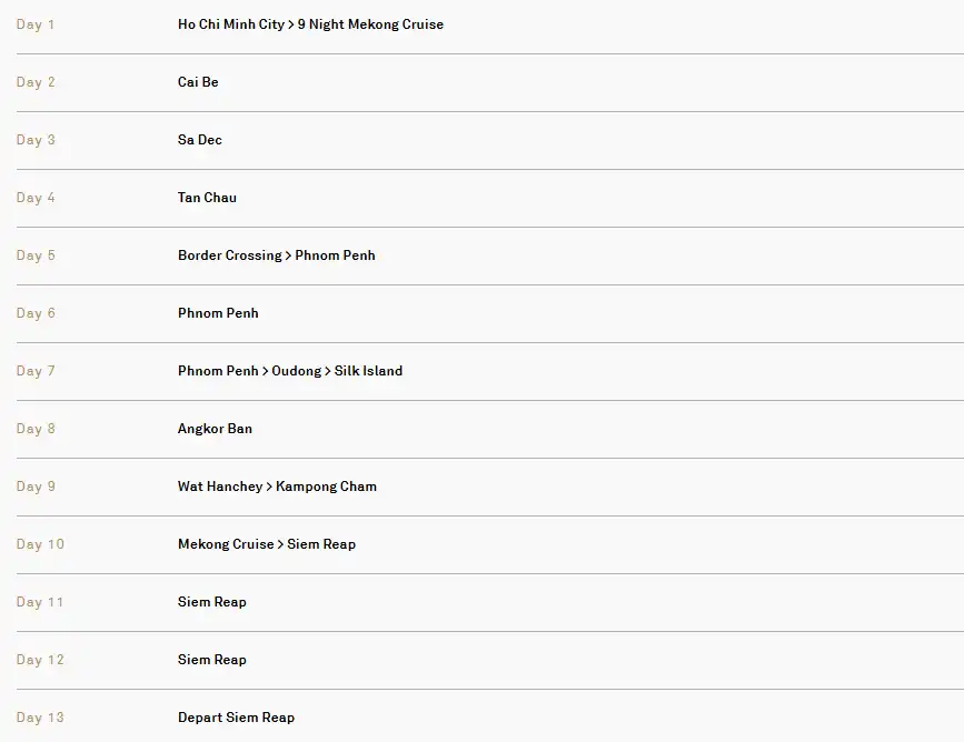 Drift past bustling floating markets in Cai Be, uncover Vietnam’s colonial history, and soak up the blend of cultures in Phnom Penh. Cruise along the tranquil Tonle River, where riverside villages remain deeply connected to tradition. Then, step into the mystique of Angkor Wat, where temple ruins and ancient relics tell the story of the mighty Khmer Empire. From VIP circus performances to champagne breakfasts at ancient temples, every moment is designed to inspire.