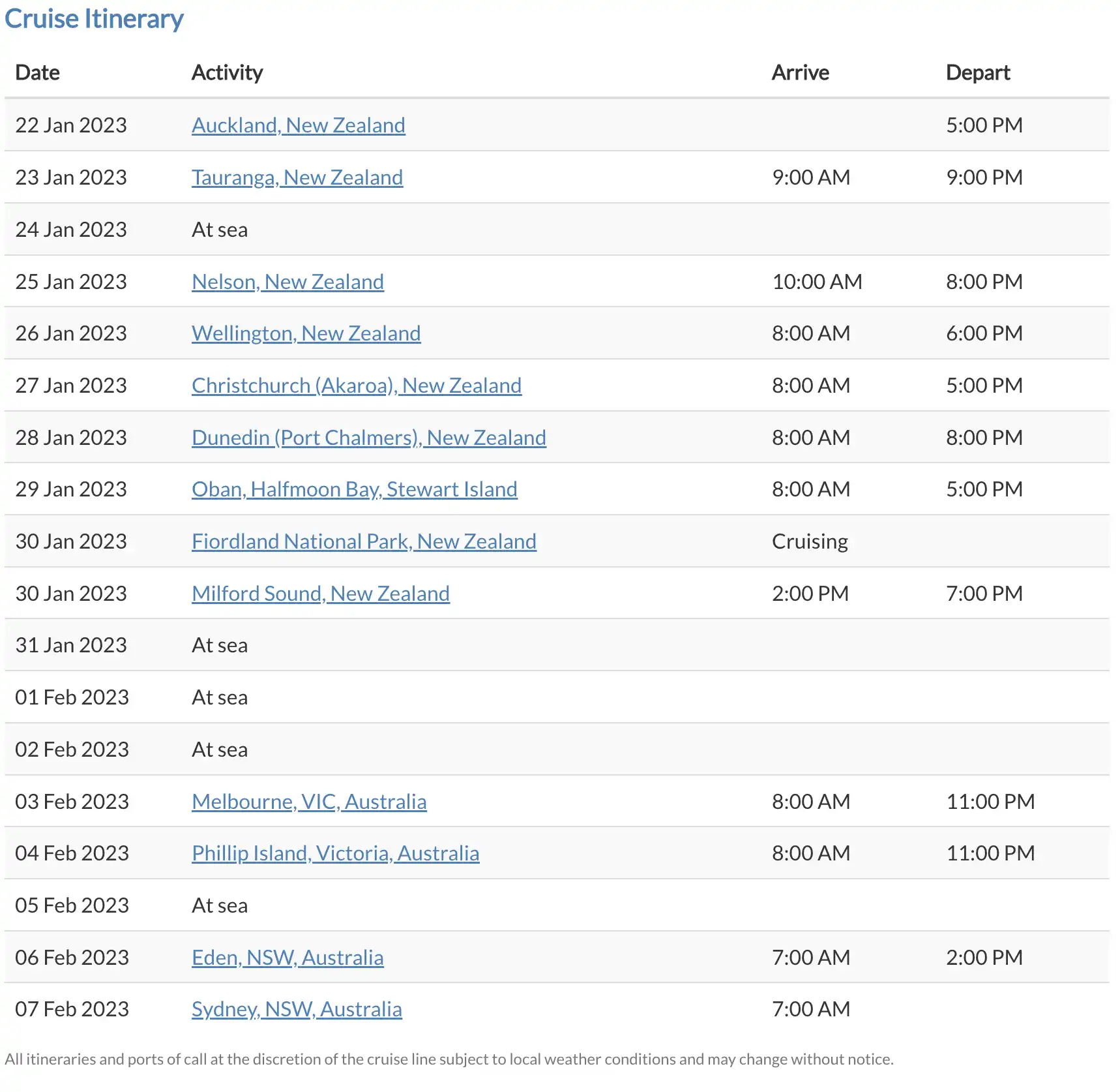 New Zealand & Australia Luxury Cruise Only package prices include: