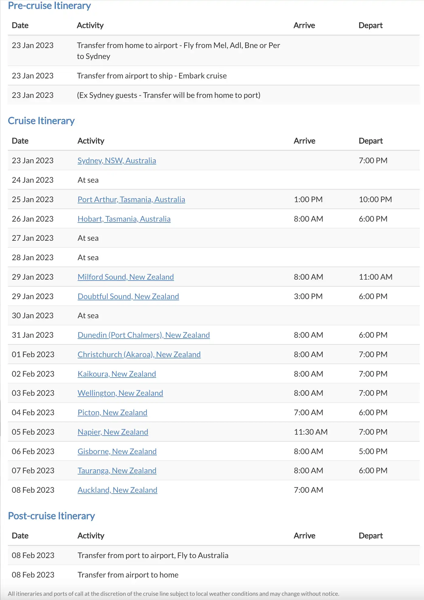 Cruise Ends: 8th February 2023 – into Auckland
