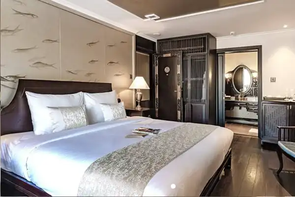 Built to resemble a traditional Asian junk, the wood-clad Violet features gleaming wooden floors, opulent silks and velvets, and cabins with floor-to-ceiling windows that frame the breathtaking views. Guests will find all the amenities they would expect in a larger vessel, including a gym and sauna, a spa with unrivaled views, a restaurant and a lounge, and a rooftop Sundeck. For an intimate experience of Halong Bay, there is nothing to compare to the lovely Violet.