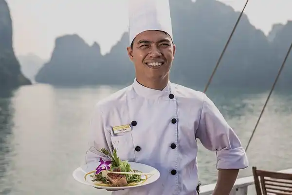 Heritage Line’s family of boutique cruise ships includes “Three Sisters” in Halong Bay, the youngest of whom is the coquettish Violet. The Violet is named after the beautiful Violet Chirita, a delicate purple-flowered plant that grows nowhere else but on the rocky slopes of Halong Bay. Like her namesake, this ship is small and exquisite.